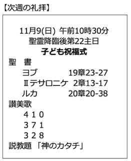 この記念すべき日に与えられました御言葉は、11/1の全聖徒の日の聖句もありますが、これまでの礼拝の流れで聴いてまいりましたルカによる福音書19章1-10節の方を選んでおります。